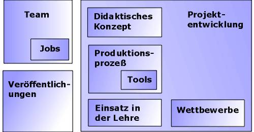 Projektentwicklung Didaktisches Konzept Einsatz in der Lehre Produktion Tools Team Jobs Wettbewerbe Veröffentlichungen